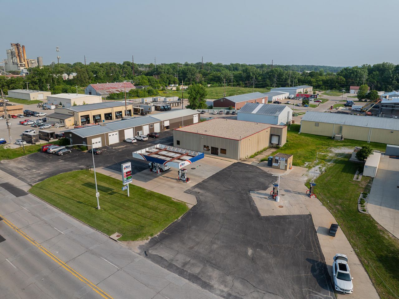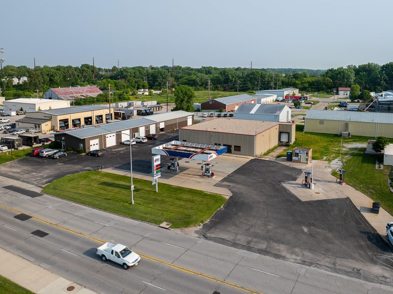 Available for sale: Two versatile commercial buildings totaling 13,080 square feet, ideally situated on E Lincoln Way with seamless access to Highway 30 and Interstate 35. Each building features multiple overhead doors, with the east building offering a convenient loading ramp to support efficient operations. All buildings are currently leased, providing immediate income for investors. The property also includes covered gas pumps, which are under a separate lease, offering an additional revenue stream or future development potential.